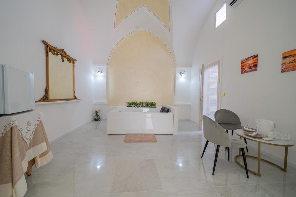 Fuori, il silenzio del borgo salentino ti avvolge, mentre il mare è a pochi chilometri di distanza.